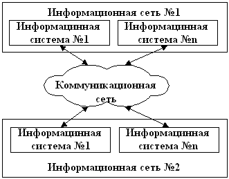 Информационная сеть предназначена для хранения информации и состоит из информационных систем. На базе коммуникационной сети может быть построена группа информационных сетей: