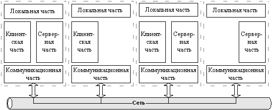 В одноранговых сетях все компьютеры равны в правах доступа к ресурсам друг друга. Каждый пользователь может по своему желанию объявить какой-либо ресурс своего компьютера разделяемым, после чего другие пользователи могут его эксплуатировать. В таких сетях на всех компьютерах устанавливается одна и та же ОС, которая предоставляет всем компьютерам в сети потенциально равные возможности. Одноранговые сети могут быть построены, например, на базе ОС LANtastic, Personal Ware, Windows for Workgroup, Windows NT Workstation. Одноранговые сети проще в организации и эксплуатации. Но они применяются в основном для объединения небольших групп пользователей, не предъявляющих больших требований к объемам хранимой информации, ее защищенности от несанкционированного доступа и к скорости доступа.