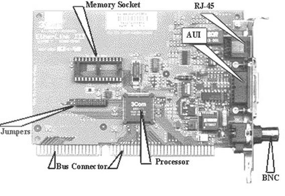Сетевые адаптеры различаются по типу и разрядности используемой в компьютере внутренней шины данных – ISA, EISA, PCI, MCA.