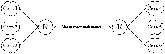 Маршрутизатор работает с несколькими каналами, направляя в какой-нибудь из них очередной блок данных.