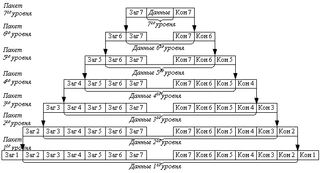 Рис. 2.2 Формирование пакета каждого уровня семиуровневой модели