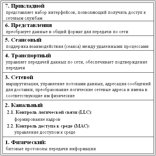 Каждый уровень модели выполняет свою функцию. Чем выше уровень, тем более сложную задачу он решает.