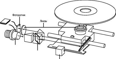 Считывание информации представляет собой процесс регистрации колебаний луча маломощного лазера, отраженного от металлической поверхности диска. Лазер посылает сфокусированный луч света на нижнюю часть диска, а светочувствительный фоторецептор улавливает отраженный луч. Луч лазера, попавший на площадку (плоскую поверхность дорожки), всегда отражается обратно; в свою очередь, луч, попавший во впадину на дорожке, обратно не отражается.