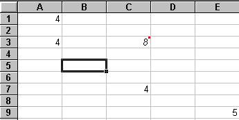 В ячейки заносятся данные. В дальнейшем при обращении к эти данным всегда идет ссылка на адрес ячейки где они расположены. Например в Е9 расположено число 5. Если необходимо провести какие-либо действия с этими данными например сложить два числа 4 из ячейки A1 и 4 из ячейки C7 и поместить их сумму в ячейку C3, то в ячейке C3 вводится формула =A1+C7 и в ячейки C3появляется результат 8.