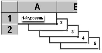 4-й уровень содержит имя ячейки, это имя может использоваться в формулах других ячеек, при этом обеспечивается абсолютная адресация данной ячейки.