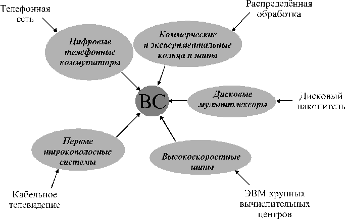 К середине 80-х годов все отмеченные тенденции развития сетей стали сближаться, что привело к разработке современных информационных сетей (рис. 1.2).