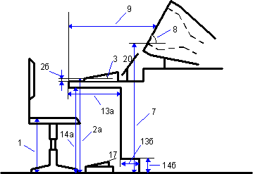 Конструкцией рабочего места обеспечено оптимальное положение работающего. Руки пользователя располагаются на рабочем столе в горизонтальном положении или слегка наклонно, угол локтя должен составлять 70-90°. Необходима хорошая опора для спины и ягодиц. Бедра располагаются параллельно полу. Ноги стоят плоско на полу или на подставке. /13,14,15/