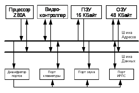 Компьютер “ПРИОР®-001” выполнен на современной элементной базе - интегральных микросхемах малой и средней степени интеграции. Архитектура компьютера базируется на высокопроизводительном микропроцессоре Z80A фирмы SGS-THOMPSON.