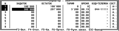 Для включения кабины необходимо нажать клавишу F3 затем ввести номер кабины и задаток, который клиент вносит в кассу перед разговором.