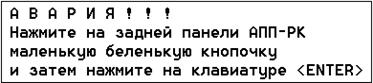 При возникновении данного сообщения необходимо на задней панели АПП-РК нажать кнопку сброс и затем на клавиатуре терминала нажать <ENTER>.