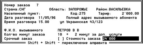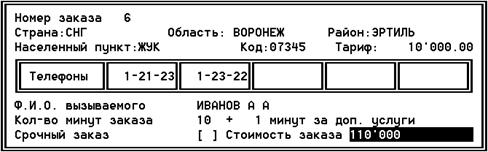 Принимая заказ, телефонистка переговорного пункта заполняет со слов абонента прототип формы МТФ-4 (см рис.4.6, рис.4.7) , распечатать квитанцию о принятии задатка и выдает ее абоненту.