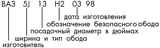 Маркировка вазовского диска закладывается на этапе изготовления обода. Маркировка содержит размер и дату изготовления. При этом она свободно просматривается после нанесения покрытия.