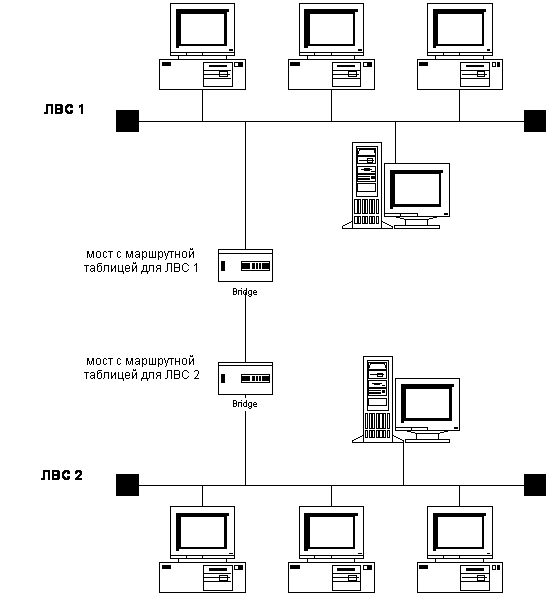 Все сети, за исключением самых крошечных, состоят из более чем одного сегмента. Делается это либо для достижения большей удаленности между конечными станциями, либо для увеличения пропускной способности сети. Чтобы компьютеры могли обмениваться сообщениями так, как если бы они были соединены одним кабелем, сегменты, в которых находятся компьютеры, соединяются друг с другом через мосты или маршрутизаторы.