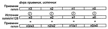 DIVPS (DIVide Packed Single-precision float-point) — деление упакованных значений в формате ХММ согласно следующей схеме.