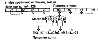 Синтаксис: SHUFPS rxmm1, rxmm2/m128,i8
