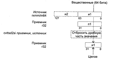 CVTTSD2SI (ConVerT with Truncation Scalar Double-precision floating-point value to Signed doubleword Integer) — преобразование (путем отбрасывания дробной части) скалярного значения с плавающей точкой двойной точности в 32-битное целое.