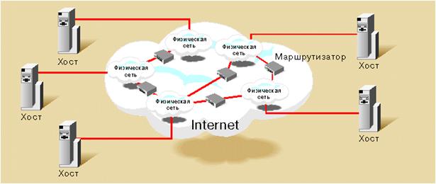 Фундаментальным принципом internet является равнозначность всех объединенных с ее помощью физических сетей: любая система коммуникаций рассматривается как компонент internet, независимо от ее физических параметров, размеров передаваемых пакетов данных и географического масштаба.