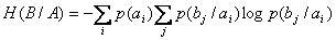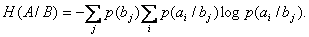 Для вычисления среднего количества информации, содержащегося в принятом ансамбле сообщений В относительно передаваемого ансамбля сообщений А в условиях действия помех, пользуются следующими выражениями, выведенными непосредственно из выражения (25):