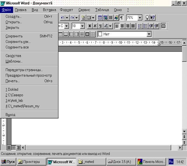 7. Выйти из WORD с помощью команды Выход из меню Файл.