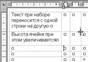 Word отображает таблицу в виде линий сетки – пунктирные линии вокруг ячеек таблицы, которые не выводятся на печать, (на экране они представлены для ориентировки). Ширину столбцов можно менять прямо в таблице – перетаскивая за линию сетки, ограничивающую столбец; или за метки –ограничители ширины столбца на горизонтальной линейке. |
