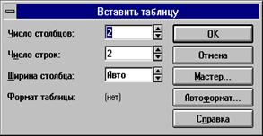 · В появившемся диалоговом окне ввести число строк и столбцов · Щелкнуть по кнопке ОК. Если в меню Таблица пометить галочкой команду Линии сетки, Word отобразит пустую таблицу в виде пунктирной сетки |