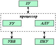 Процессор делит на 2 части: управляющий автомат чаще называют УУ и АЛУ устройство управление (управляющий автомат), и (оперативное устройство) арифметико-логическим устройством (АЛУ).