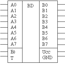 КР580 ВА86 представляет собой 8-разрядный формирователь, обеспечивающий ток нагрузки 32 мА. Формирователь имеет выход с 3 состояниями управляется сигналами направлениями передачи и отключения. Условно графическое обозначение шинного формирователя представлено на рисунке 2.2: