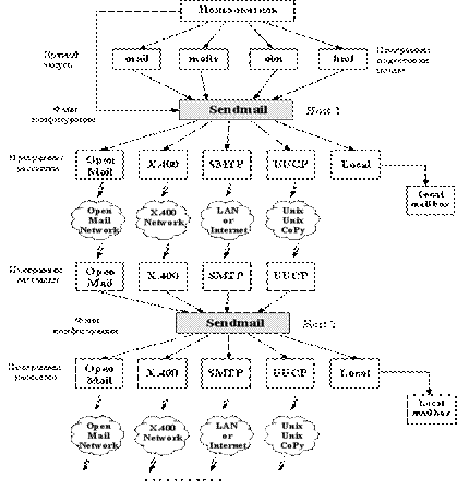 Рис. 4. Схема почтового взаимодействия на базе программы Sendmail