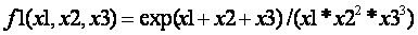 stor2:mas1=(' f(x1,x2,x3)=exp(x1+x2+x3)/(x1*x2^2*x3^3)',