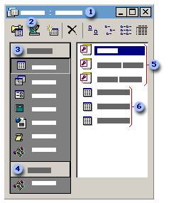 Кнопка Группы открывает список групп объектов базы данных. Пользователь имеет возможность добавлять в группу объекты разных типов. Группа содержит ярлыки объектов базы данных, принадлежащих к группе.