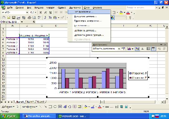 2.2 Работа с меню Диаграмма и панелью инструментов Диаграммы