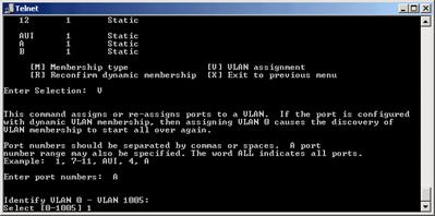 Для того, чтобы использовать какую-либо VLAN еЈ необходимо добавить(в свитчах поздних серий это делается неявно, когда вы впервые эту VLAN используете): для этого в основном меню VLAN нажмите A и следуйте инструкциям: