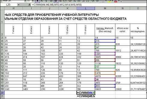 Выбрать и ввести в ячейку L 20 оптимальную формулу, которая задает суммирование ячеек с М4 по М19.