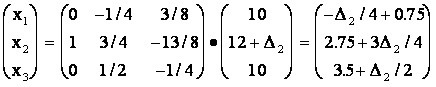 Так как начальными базисными переменными являлись x1, x2, x3 в оптимальной симплексной таблице в соответствующих столбцах расположена матрица А-1 Изменим время работы на оборудование второго типа на величину D2, тогда время работы будет 12 + D2 .