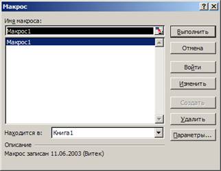 Рисунок 12 – Макросы можно запускать из окна диалога Макрос