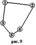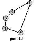 Рассмотрим рис. 9-10 и попытаемся найти в них кратчайшие туры. Очевидно, что кратчайший тур не должен содержать пересекающихся ребёр (в противном случае, поменяв вершины при пересекающихся рёбрах местами, получим более короткий тур). В первом случае кратчайшим является тур 1-2-4-5-3-1, а во втором – тур 1-2-3-4-5-1. Анализируя множество других аналогичных расположении пяти и более городов, можно сделать следующее общее предположение: