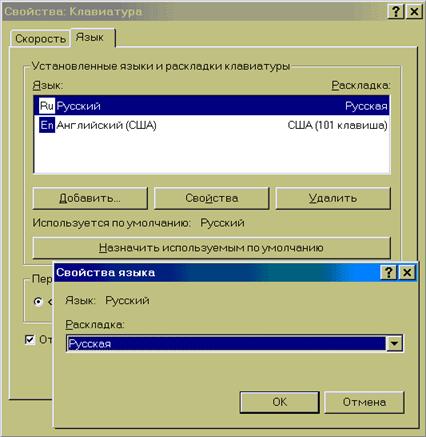 Если вас не устраивает раскладка клавиатуры, вы можете попытаться подобрать под себя более удобную. Сразу предупреждаем, что для русского языка имеется всего два альтернативных варианта. Чтобы сменить для установленного языка раскладку клавиатуры, откройте закладку Language в диалоговом окне свойств клавиатуры, выберите в списке язык, для которого требуется сменить раскладку, и нажмите кнопку Properties (Свойства). Выберите в раскрывшемся списке нужную раскладку.