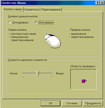 Как изменить конфигурацию кнопок мыши и скорость двойного нажатия?