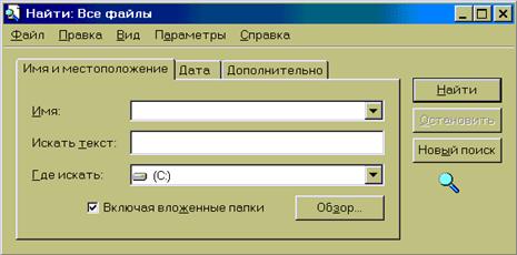 Для осуществления поиска введите имя искомого файла (папки) или начало этою имени в текстовое окно Named (Имя) в таблице Name & Location (Имя и местоположение).