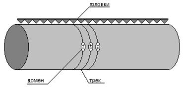 Есть барабан, у которого так же есть треки, и так же над каждым треком расположена головка для обмена, но сам барабан не вращается, а за счет некоторых магнитно-электрических эффектов осуществляется перемещение по треку цепочки доменов. При этом каждый домен однозначно ориентирован, то есть либо он бежит стороной, заряженной «+», либо стороной, заряженной «-». Так кодируются ноль и единица. Эта память очень быстродейственна, так как в ней нет никаких механических действий. Эти устройства обычно используются во встроенных вычислительных системах. (Например, она используется в американских ШАТЛах).