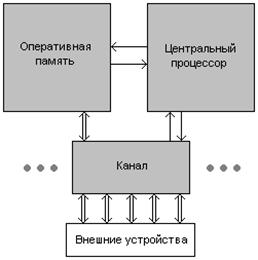 Канал - это специализированная вычислительная машина, имеющая специализированный процессорный элемент и необходимую память. Канал обычно имеет следующую структуру: у него есть высокоскоростной канал связи с оперативной памятью основной машины, управляющие каналы для взаимодействия с ЦП и имеется некоторое количество каналов для подключения внешних устройств.