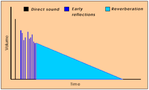 · Direct-to-reverberant sound ratio - соотношение уровней громкости основных звуков и реверберации. Уровень громкости основного звука становится интенсивнее при достижении ушей слушателя и становится тише, когда уходит на задний план. В тоже время уровень громкости реверберации приблизительно неизменен вне зависимости от расстояния между слушателем и источником звука. Сооношение уровней громкости основного звука и реверберации дает слушателю важную информацию для оценки расстояния до истоника звука.