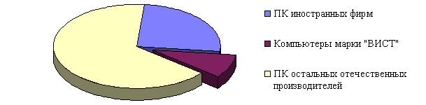 Предполагается, что в 1997 году российский рынок компьютеров будет заметно расти. По предварительным оценкам, он должен увеличиться на 300 - 350 тысяч и достичь цифры 1,5 - 1,6 миллиона компьютеров. Причем доля рынка SOHO составит около 60%. Немаловажным является тот факт, что планируемый прирост рынка (согласно прогнозу) будет практически полностью распределен между тремя - четырьмя крупнейшими российскими производителями персональных компьютеров.