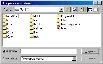 2. В открывшемся окне (рис 1.2), в поле со списком Папка выберите диск, содержащий документ, который следует открыть.