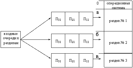 В этом случае, если соответствующий раздел занят, то процесс остается в очереди во внешней памяти даже в том случае, когда другие разделы свободны.