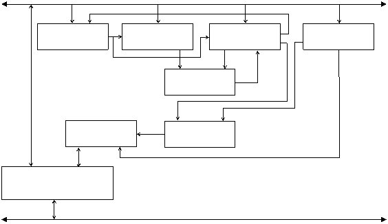 В таком случае вырабатывается сигнал ТПДП – требование прямого доступа к глобальной памяти, который через интерфейс арбитра (внутренний автомат) поступает на Централизованный Арбитр Доступа (ЦАД), как сигнал ТШ (требование шины). Если шина свободна, то ЦАД вырабатывает сигнал РШ (разрешение шины), который преобразуется интерфейсом арбитра в ППДП и процессор подключается к глобальной шине для операций Чтения/Записи.