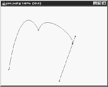 Рис.15. Создание узла - точки перегиба. Правый отрезок кривой был только что создан при удержании клавиши Alt (Option)