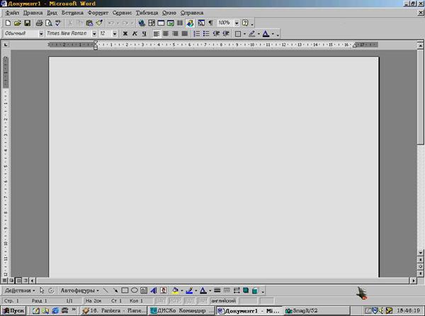 Строка меню, начинающаяся со слова “Файл”, содержит названия главных режимов меню, каждый из которых в свою очередь раскрывается в список команд. При активизации кнопок, идет выполнение наиболее часто используемых операций, в том числе некоторых команд форматирования, печать документа и просмотр подготовленного к печати документа на экране. По умолчанию при создании нового документа панель инструментов всегда изображается на экране, но при желании панель инструментов можно убрать с экрана. На экране можно отразить ту или иную панель в зависимости от потребности потребителя.