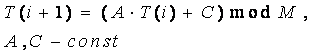 Данный линейный конгруэнтный датчик ПСЧ вырабатывает последовательности псевдослучайных чисел T(i), описываемые соотношением
