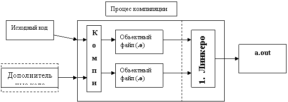 2) После компиляция (этап создания) обьектных файлов запускаеться линковщик (HP-UX linker (ld))
